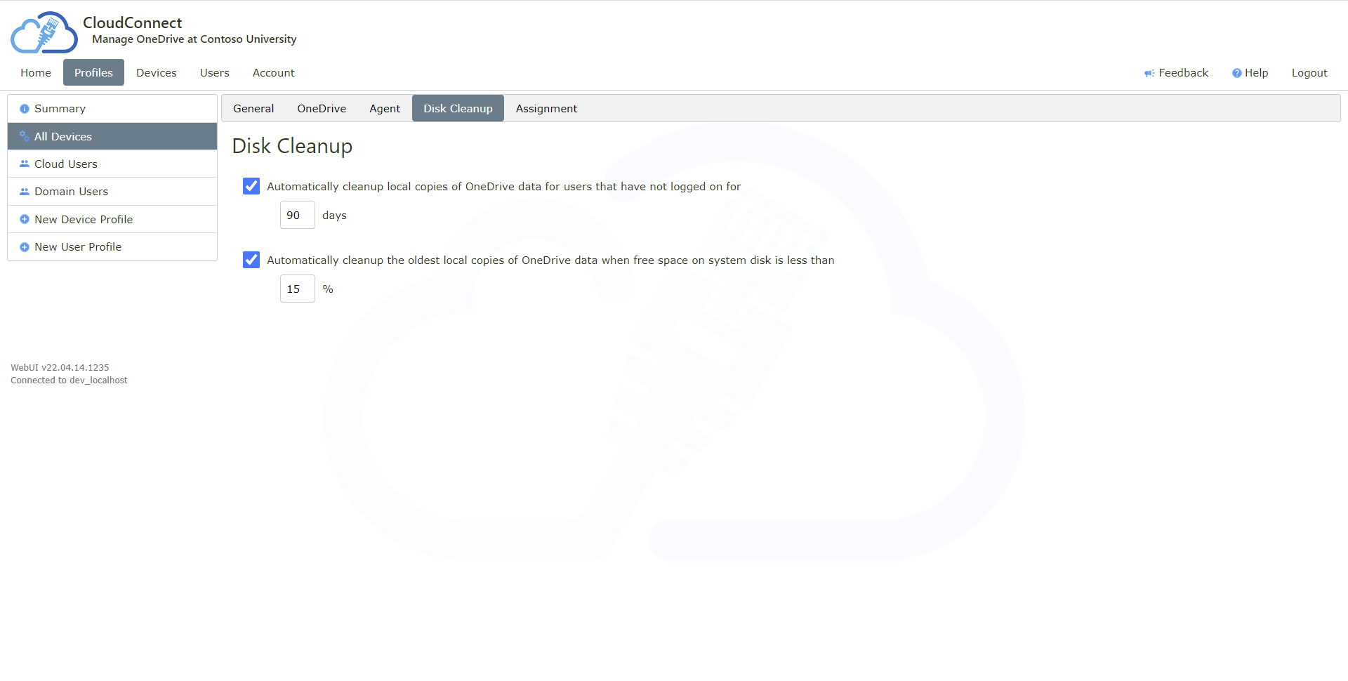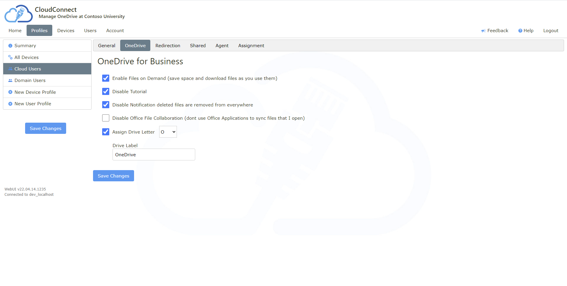 Multiple fully customisable web based configuration profiles assigned to users, groups and specific devices